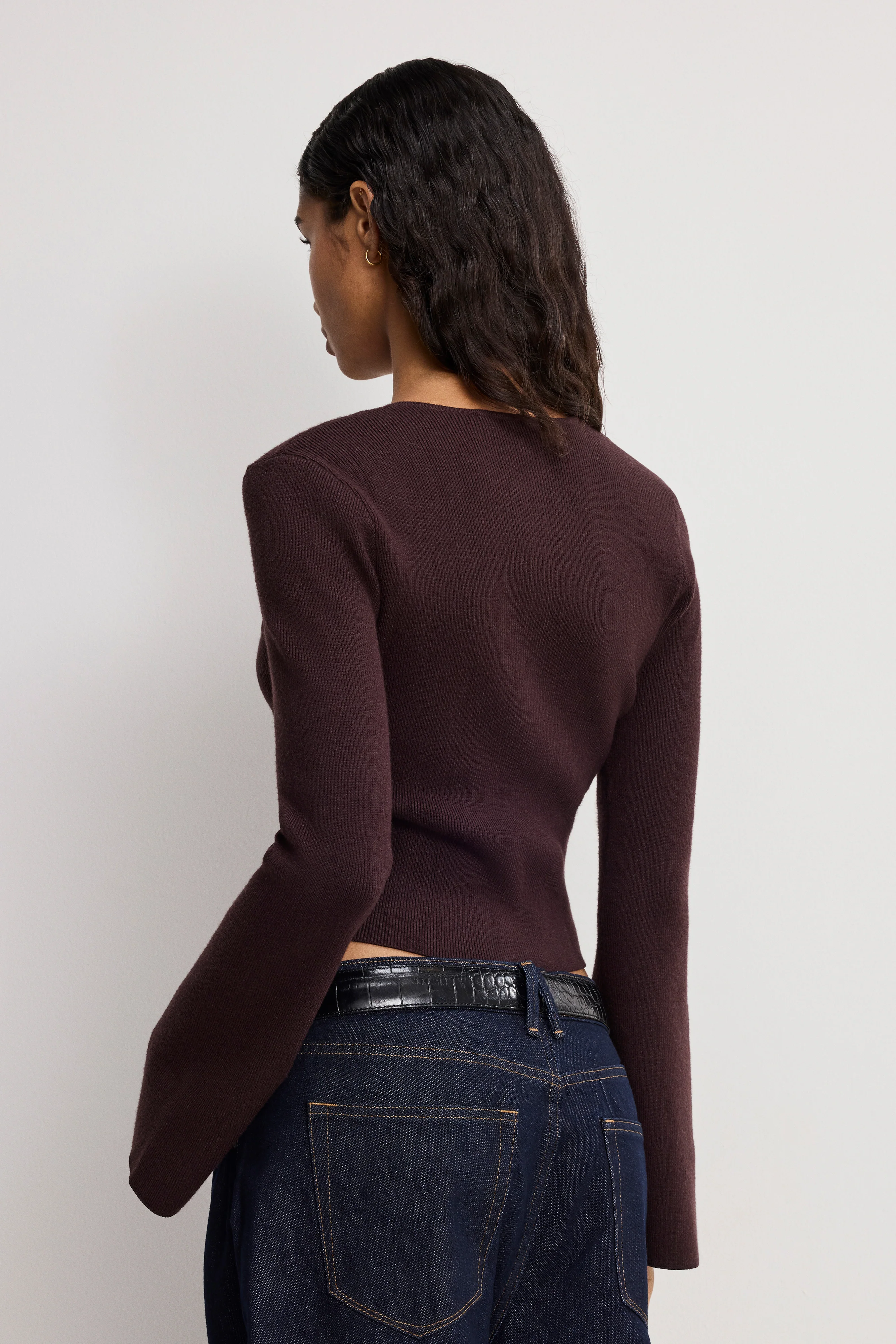 The Bell Sleeve Knit Cardigan balances softness with structure. Cut slim for a close fit, it features exaggerated sleeves that move with ease and a button-up front that keeps the look sharp. Easy to wear, hard to overlook.