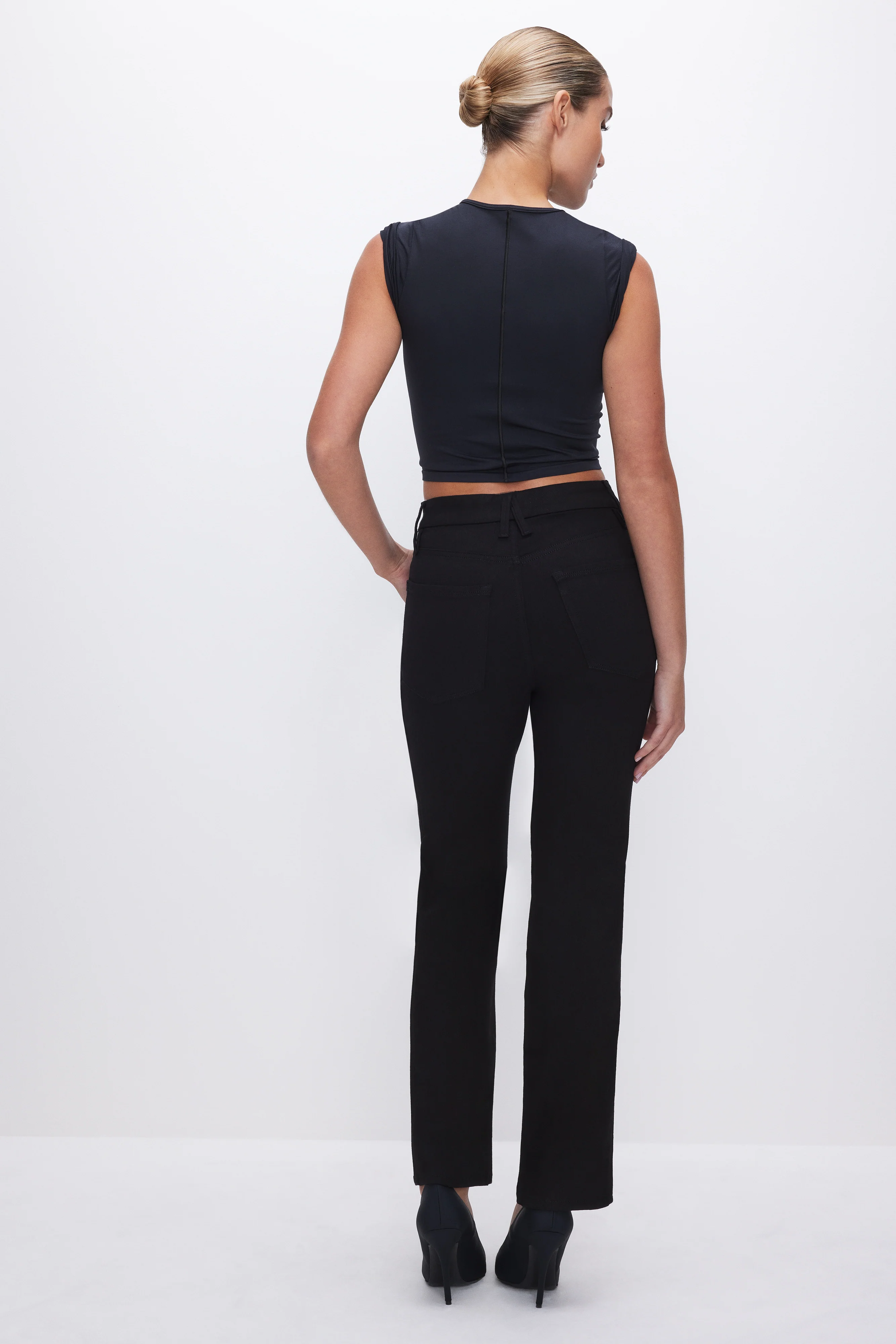Curve defining jeans like no other, these super high-rise straight jeans feature a contour seam designed to enhance your shape and define you silhouette. Engineered to resist fading, our new premium denim fabrication uses Stay Black Technology that keeps a deep rich color up to 30 washes.