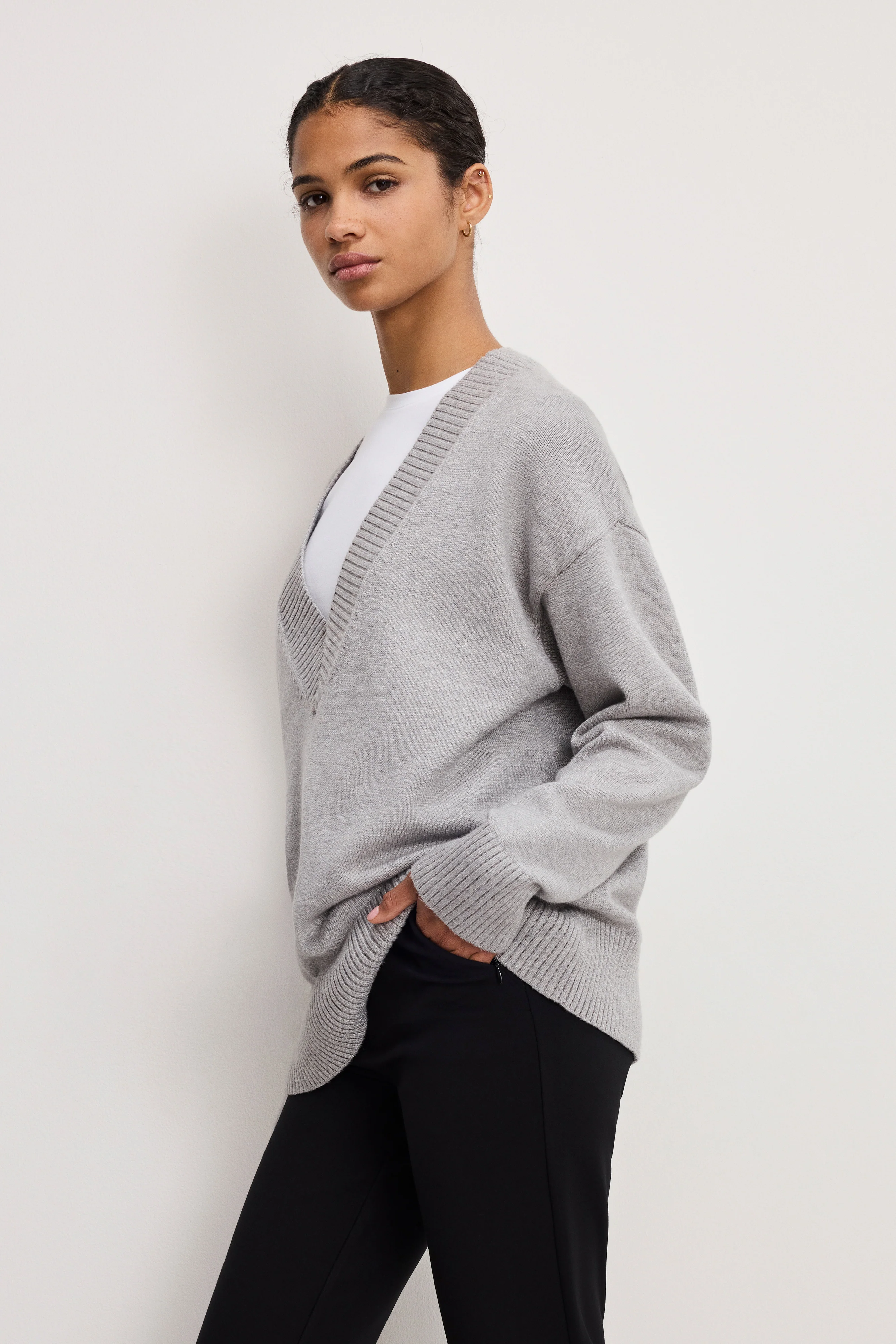 -70%DEEP V KNIT SWEATER | MELANGE GREY—
